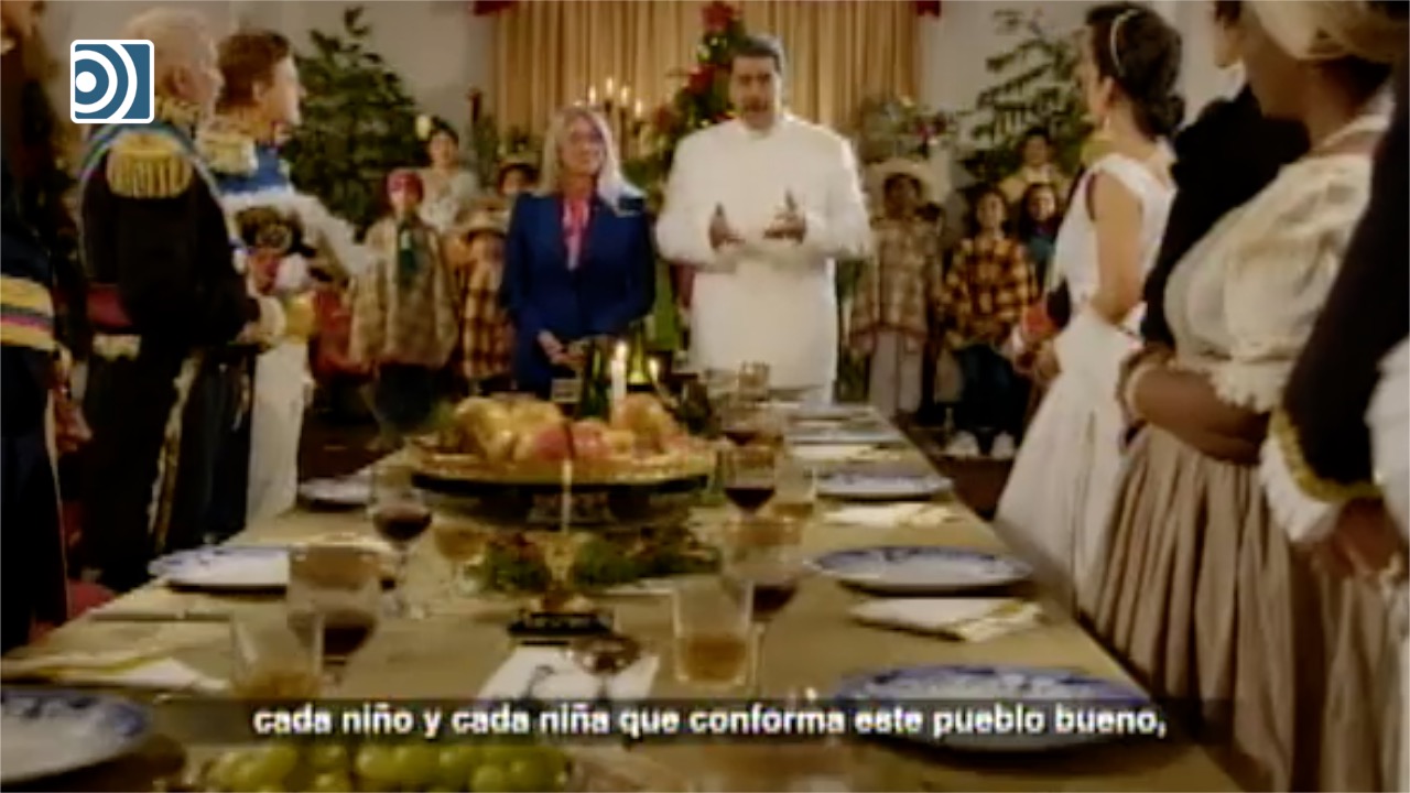 Desde el Palacio de Miraflores, y junto a su esposa Cilia Flores, el chavista ha dirigido un estrambótico discurso a los venezolanos para felicitar la Navidad. Rodeado de actores ha hablado del "camino de la felicidad y la vida" a un país devastado por el hambre y la pobreza y donde están presos centenares de disidentes políticos.