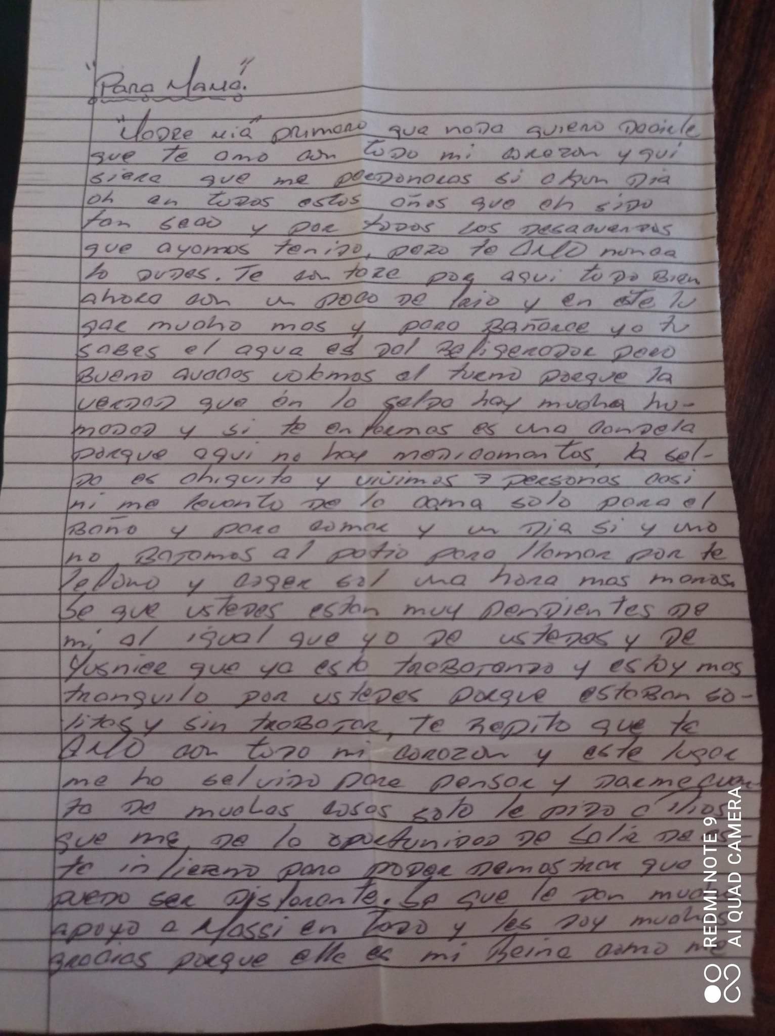 Escribe desde su celda, "chiquita y compartida con otras siete personas". Cuenta que bajan "al patio un día sí y otro no para tomar una hora de sol". Su caso es especial porque él no participó en las protestas. Tuvo la mala suerte de "perder el móvil en el lugar de los disturbios antes de que sucedieran y le apresaron dos días después de esas protestas, cuando fue a recogerlo a comisaría", recuerda su hermana Coral. "Desde entonces sólo le hemos visto una vez".