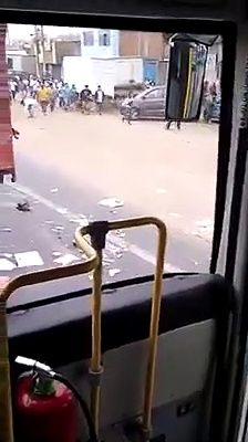 Varios manifestantes lanzan piedras contra un autobús urbano en Perú