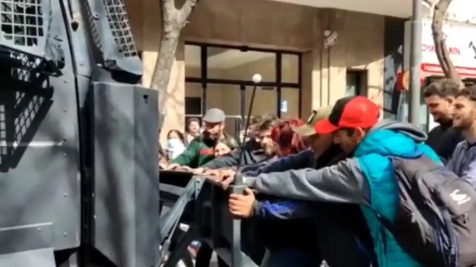 Antes, este líder radical protagonizó una imagen que no tardó en hacerse viral en las redes sociales. Se le vio junto a otros militantes seguidores de Fernández de Kirchner, como los diputados Natalia Zaracho y Federico Fagioli, haciendo retroceder un camión de la policía porteña equipado con cañones de agua que más tarde sería utilizado para dispersar a los radicales que lanzaban todo tipo de objetos contra los agentes.