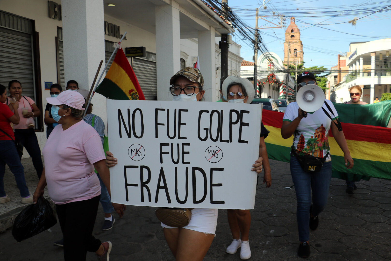 Según EFE, algunas personas han protestado en las puertas de la oficina regional del Servicio de Impuestos Nacionales con banderas y pancartas con consignas como "La lucha es de todos", "Basta de persecución política", "No fue golpe, fue fraude". Además de la capital regional, el paro también se ha respetado en varias provincias cruceñas y hay bloqueos en las carreteras que conectan al departamento con el resto del país.