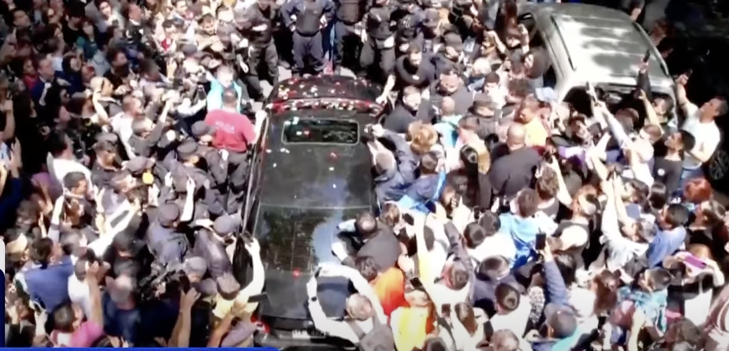 Los efectivos de la Policía presentes no han podido contener a los simpatizantes de Milei que le lanzaban flores y querían saludarle. "Vino mucha gente a saludarme por el cumpleaños", ha declarado Milei a la prensa.