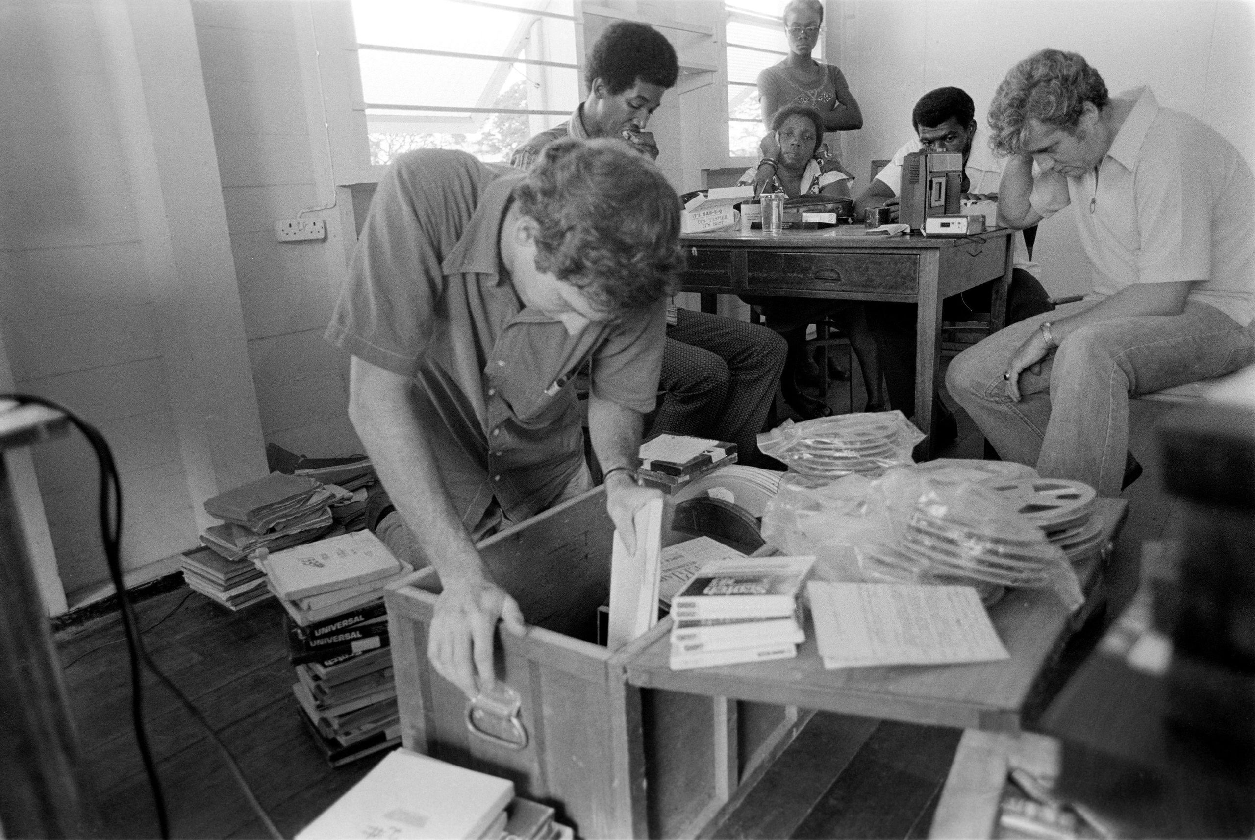 Agentes del FBI en Jonestown, revisando archivos y cintas, tras la masacre ordenada el 18 de noviembre de 1978 por el reverendo James (Jim) Jones, considerado el mayor asesino en masa de la historia.
