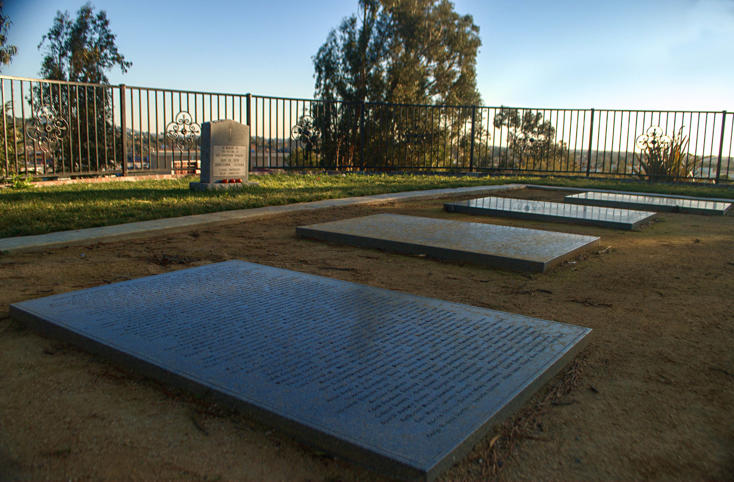 Las víctimas de Jonestown tienen su monumento en el cementerio Evergreen de Oakland, donde yacen los restos de 409 de ellas. Fue levantado por uno de los hijos de Jim Jones -responsable último de la masacre- en 2011.