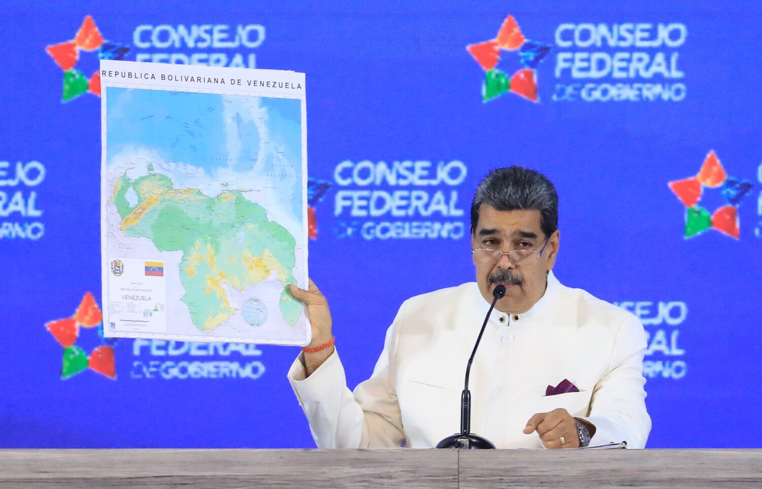 Ante esta situación, Maduro recurrió a una vieja estrategia muy utilizada por gobiernos autoritarios y decidió desviar la atención hacia un territorio históricamente reclamado por Venezuela y que hoy está bajo soberanía de Guyana. Se trata de la zona del Esequibo de 160,000 kilómetros cuadrados y con una gran riqueza mineral y de otros recursos.