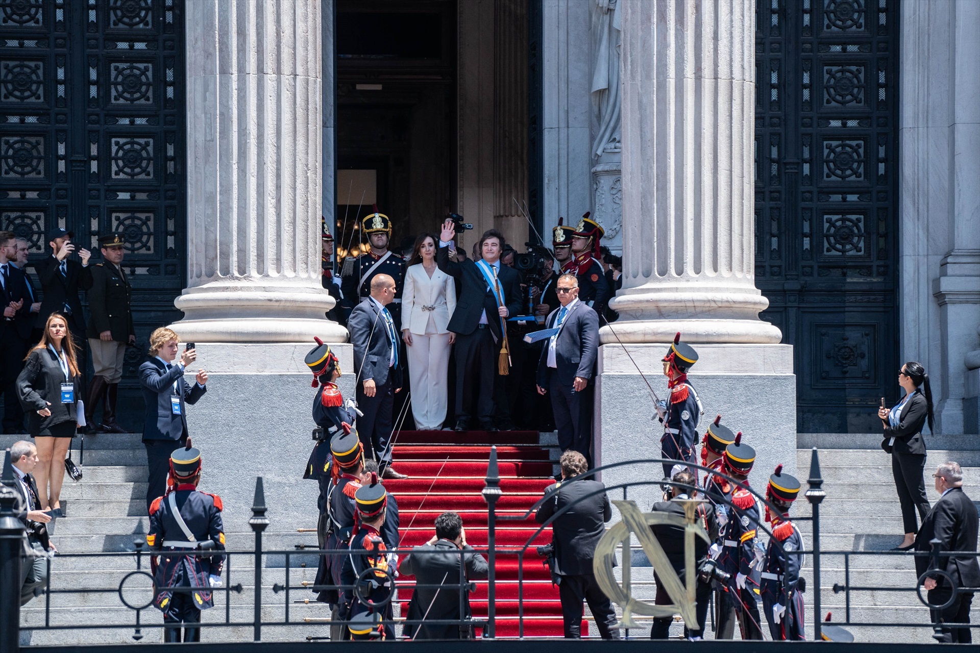 Javier Milei saluda a sus simpatizantes una vez que ha jurado el cargo como presidente de Argentina. A continuación dio un discurso de investidura en el que describió la calamitosa situación en la que se encuentra el país, herencia de décadas de peronismo.