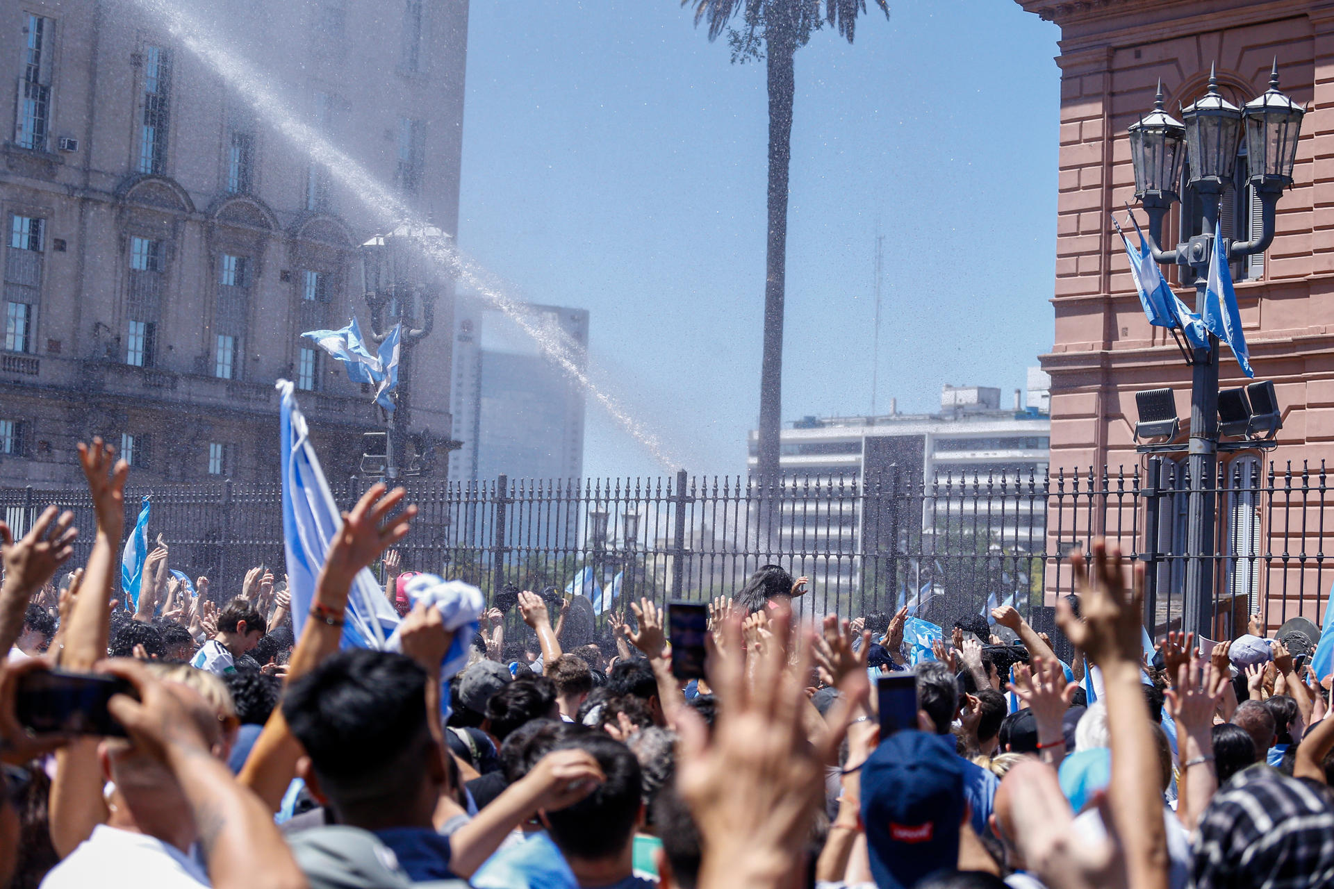 Miles de simpatizantes de Javier Milei rodean la Casa Rosada, que hoy pisa como presidente por primera vez el líder de La Libertad Avanza que arrasó en la segunda vuelta de las elecciones presidenciales al peronista Sergio Massa.