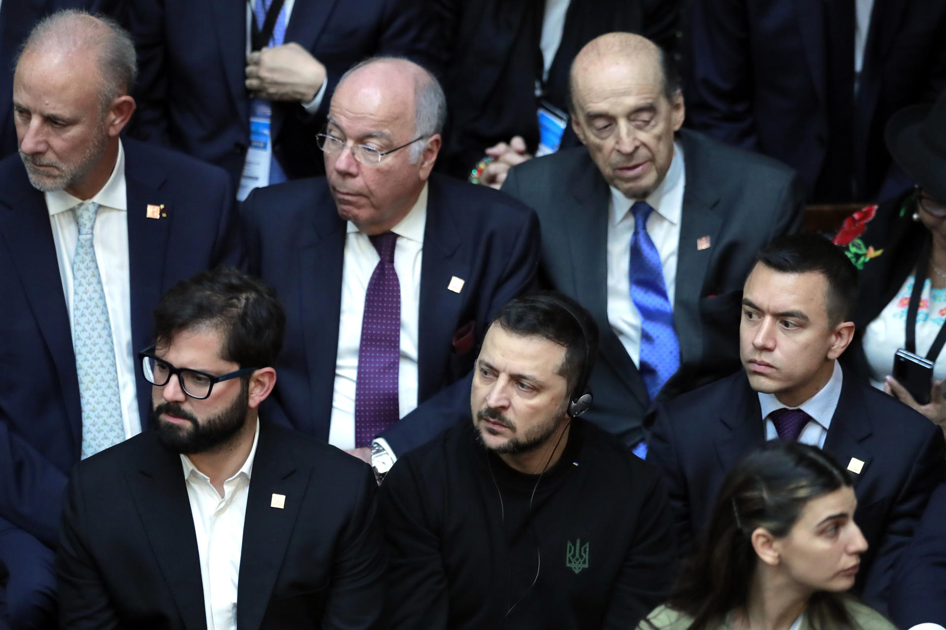 Gabriel Boric (Chile) , Volodomir Zelenski (Ucrania) y Daniel Noboa (Ecuador) asisten como invitados al juramento de Javier Milei en el Congreso de la Nación en Buenos Aires (Argentina).