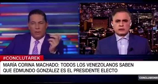 El periodista Fernando del Rincón le echó en cara tanto las evidencias del fraude masivo como la operación para sacar de Venezuela al legítimo ganador de los comicios, Edmundo González, que el pasado fin de semana tomó un avión rumbo a España tras "contactos" y "negociaciones" con el Gobierno español tal y como señaló la vicepresidenta Delcy Rodríguez.