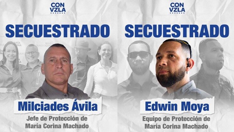 #Urgente | Milciades Ávila y Edwin Moya, miembros del equipo de seguridad de @mariacorinaya fueron secuestrados este fin de semana por efectivos de las fuerzas represivas del régimen.