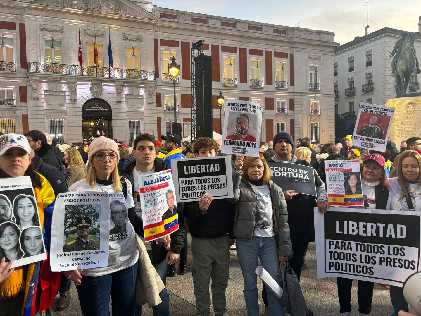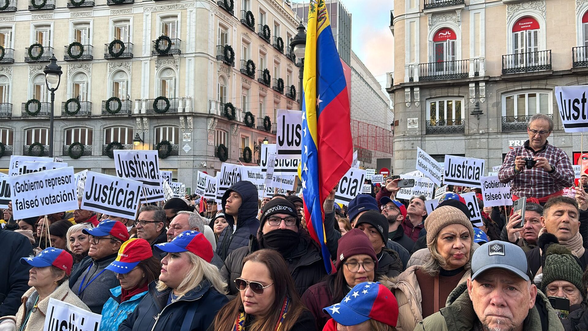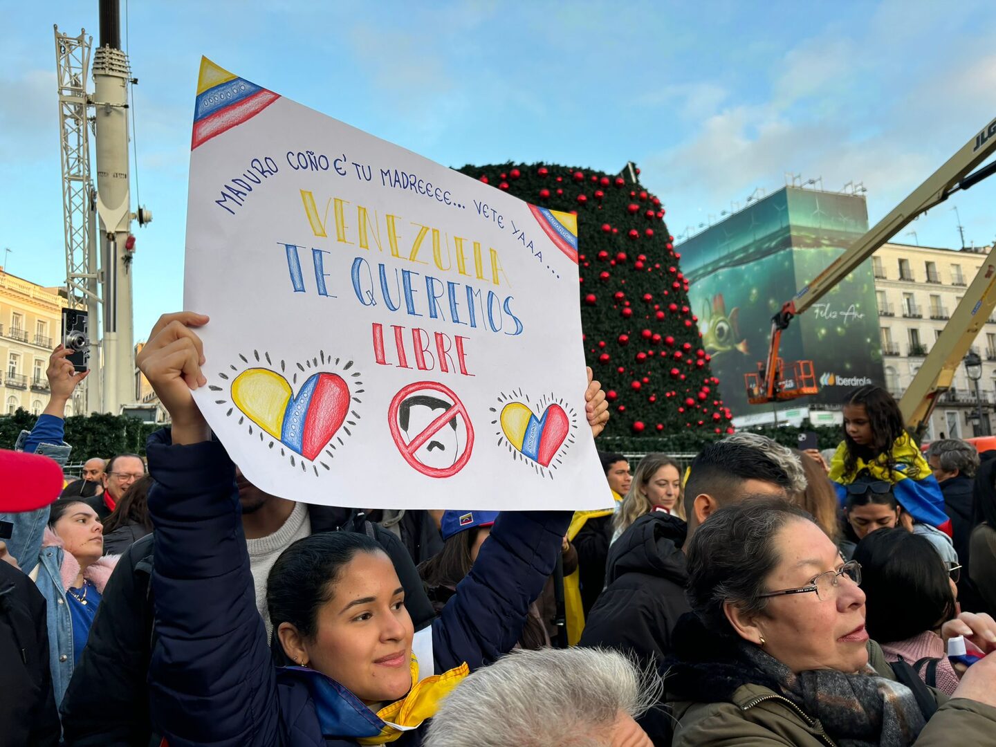 La intensidad y tensión vivida en las últimas horas en Venezuela se ha trasladado este jueves a la madrileña Puerta del Sol, donde alrededor de 4.000 personas —según Delegación de Gobierno— han reclamado que Venezuela vuelva a la democracia a partir de la supuesta toma de posesión que llevará a cabo el presidente electo, Edmundo González Urrutia, este viernes 10 de enero en Caracas. Una concentración en la que los presentes han vivido un carrusel de emociones por las informaciones llegadas desde Venezuela que apuntaban al secuestro de la líder de la oposición democrática venezolana, María Corina Machado, por parte del Régimen de Nicolás Maduro. Lee toda la información: