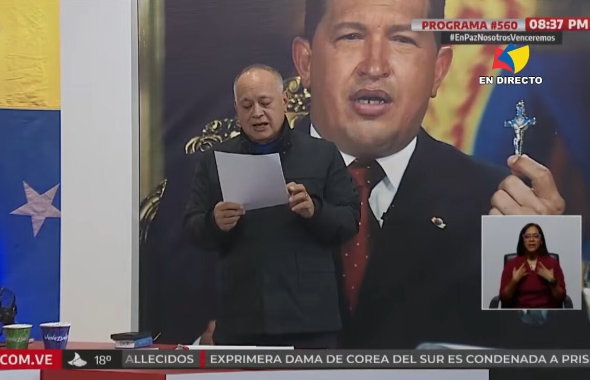 La alusión a la desaparición del canal —por tanto— es pura y enteramente del presentador, Diosdado Cabello. El conductor, considerado una de las figuras claves del aparato represor del chavismo, mete la cuña sin pudor para lanzar el dardo contra la cadena privada. Tras leer la supuesta carta que le habría mandado el informador desde la capital estadounidense, proclama la manida consigna "en paz, nosotros venceremos".