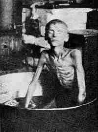 Los partisanos del comunista Josip Broz Tito, en Yugoslavia, desataron, como era habitual, el terror rojo por todo el país ante la indiferencia de los Aliados. Violando todos los tratados de guerra recluyeron a los soldados italianos y alemanes en campos de concentración donde muchos de ellos terminaron muriendo por desnutrición. En la imagen un soldado italiano desnutrido en un campo yugoslavo.