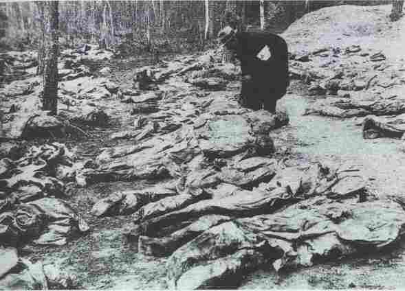 En el bosque de Katyn fueron asesinados entre 15.000 y 20.000 personas que fueron enterradas posteriormente. Cuando se produjo la invasión alemana en 1941 los nazis encontraron las fosas y utilizaron la masacre a su favor. Tras la retirada alemana y la llegada del Ejército Rojo a tierras polacas, la URSS cargó la culpa sobre los nazis, después prohibió hablar y escribir sobre el tema.