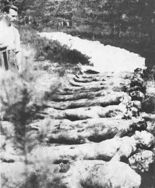 Cuando los nazis invadieron la URSS en junio de 1941 el Ejército Rojo, que tanto y tan bien se había empleado con sus propios ciudadanos, huyó despavorido. Tras él las brigadas políticas de la NKDV, la policía política, iban ajustando cuentas por pueblos y ciudades. Antes de la llegada de los alemanes, arrestaban a los sospechosos y los fusilaban o les metían un tiro en la nuca. En la imagen un grupo de habitantes de la ciudad polaca Lemberg (hoy en Ucrania), ciudad natal de Ludwig von Mises, buscan a sus familiares en una pila de cadáveres dejada por los comisarios políticos comunistas.