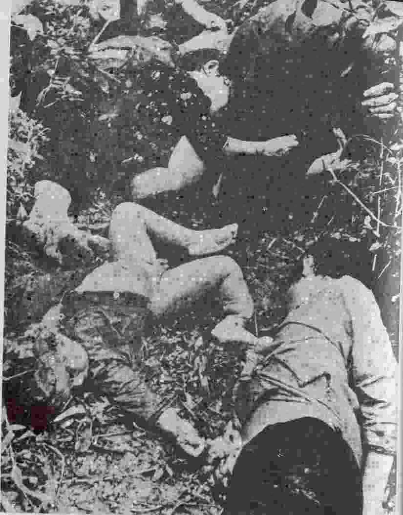 Familias enteras de la Prusia oriental, Galitzia y otras regiones alemanas del este perecieron víctimas de la brutalidad desplegada por el Ejército Rojo, una brutalidad planificada políticamente por los líderes comunistas de Moscú. Prácticamente todas las mujeres desde la niñas de 10 a ancianas de más de 80 fueron violadas sistemáticamente por los soldados "rojos". En multitud de ocasiones después de la violación asesinaban a las mujeres y a sus hijos como se ve en esta imagen. En la RDA se prohibió terminantemente hablar de estos episodios mientras la propaganda del Gobierno comunista alemán vendía que el Ejército Rojo había liberado heroicamente a Alemania de los nazis.