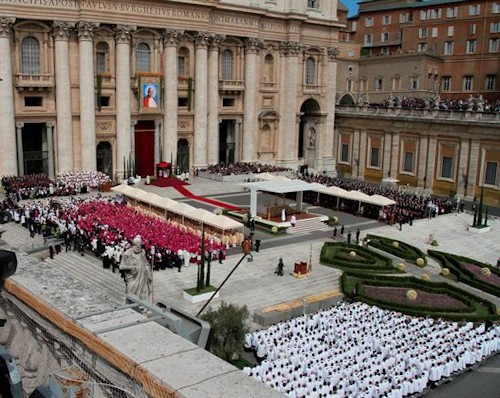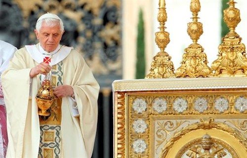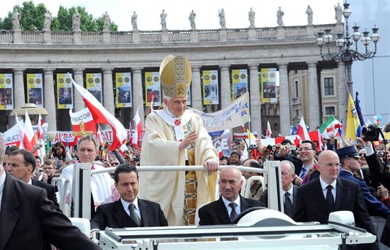 Benedicto XVI oficia en la plaza de San Pedro la misa durante la que proclamará beato a su antecesor