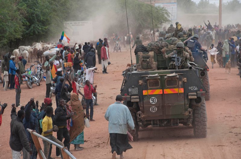 Recibimiento de la población a las tropas francesas y malienses en una localidad recién liberada de los yihadistas.
