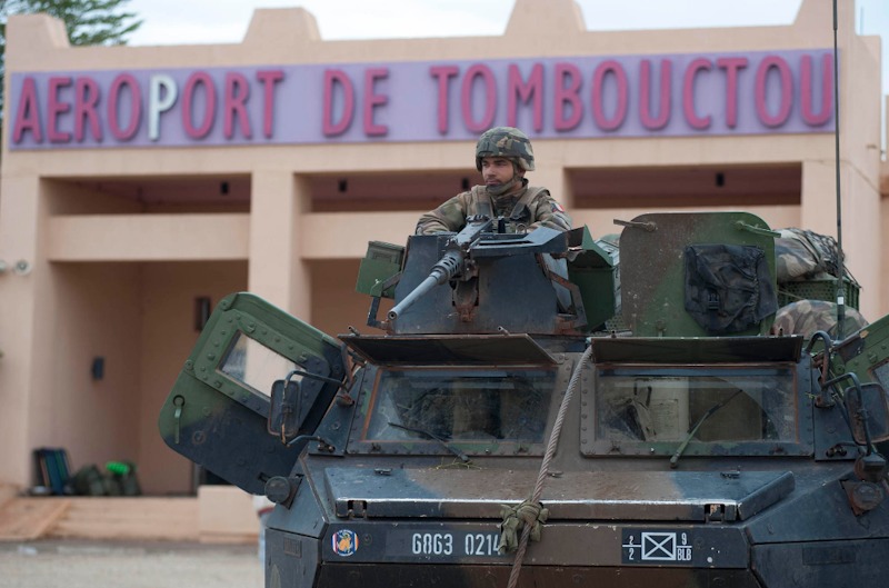 Fuerzas franceses y malienses en las cercanías del aeropuerto de Tombuctú.