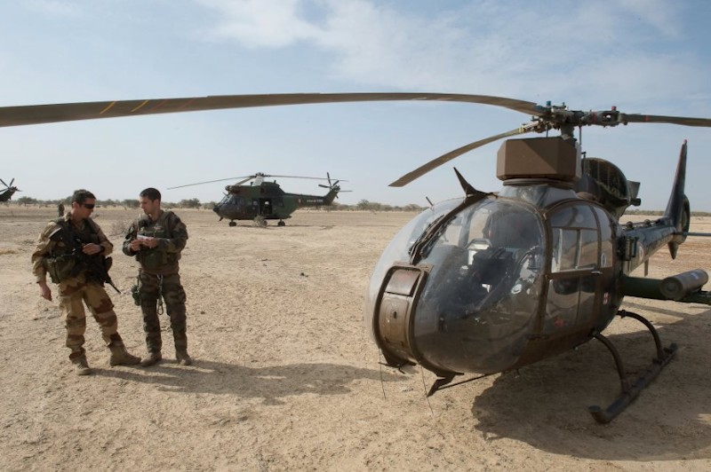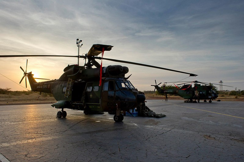 Helicópteros Puma y Gazelle del Ejército del Aire francés, en un aeródromo al norte de Bamako.