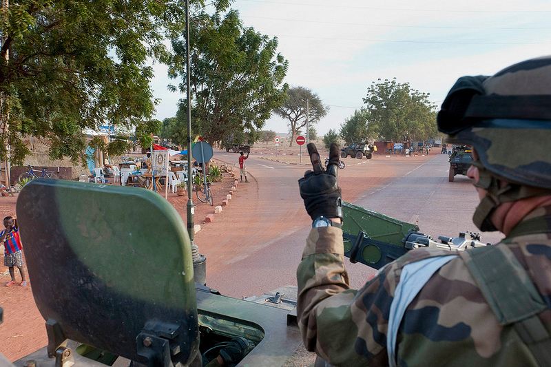 Un control franco-maliense en las proximidades del aeropuerto internacional Mopti Ambodedje.