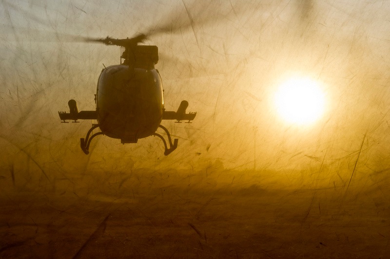 Uno de los helicópteros del Ejército de Tierra francés que protege el aeropuerto internacional Mopti Ambodedje.