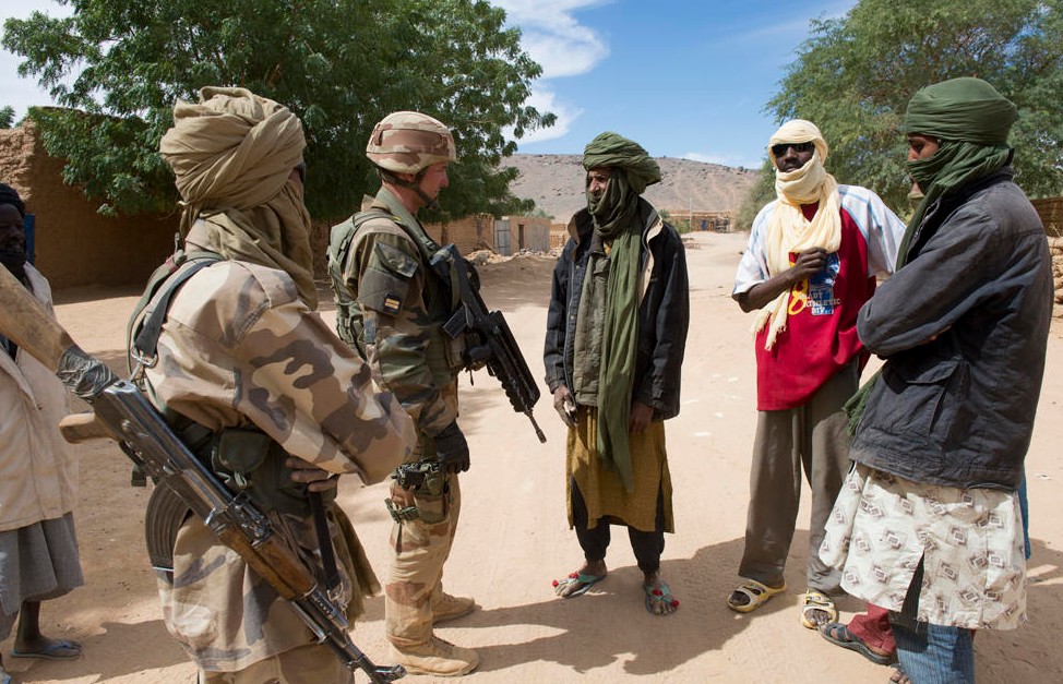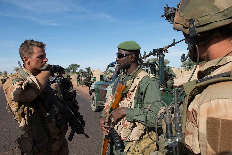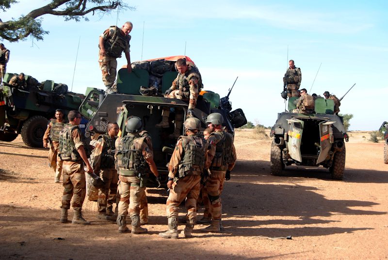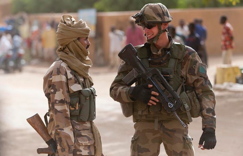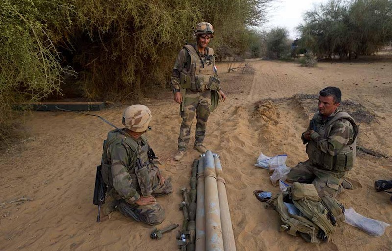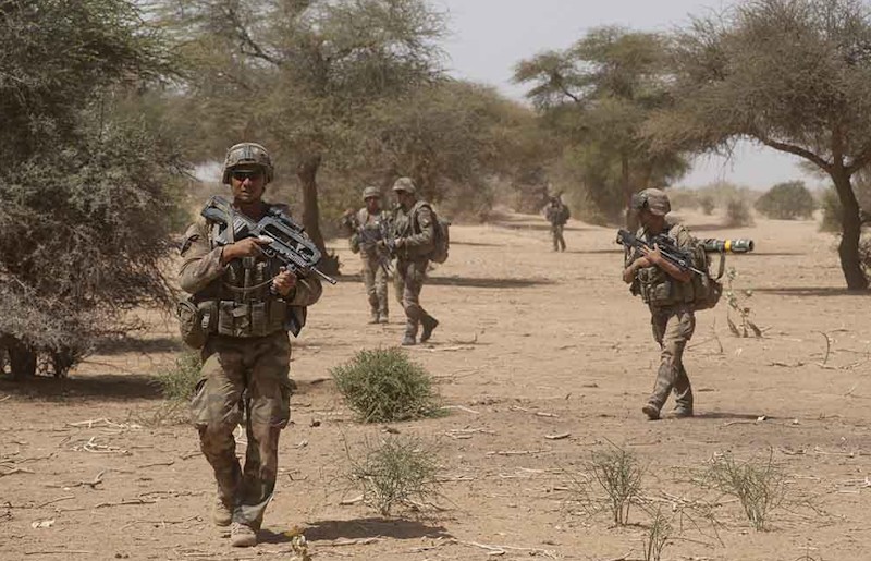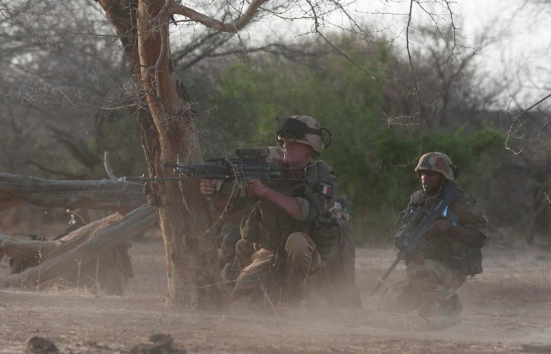 Las tropas de combate francesas y africanas luchas contra los yihadistas en Mali.