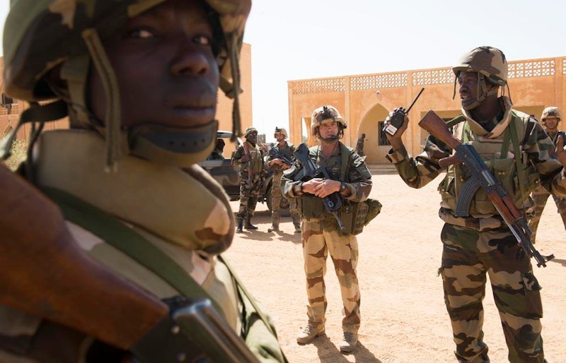 Militares franceses, malienses y de las tropas africanas aliadas en el denominado "bucle" de Niger.