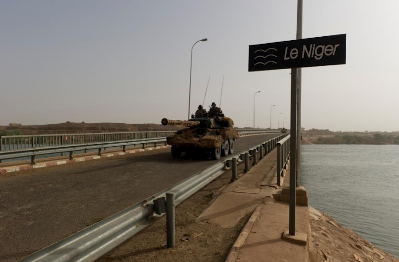 Un blindado francés sobre uno de los puentes que cruzan por encima del río Niger.