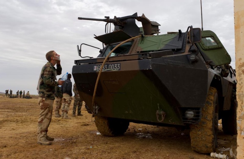 Blindado galo recién llegado a Mali. La foto fue tomada horas antes de la primera ofensiva francesa.