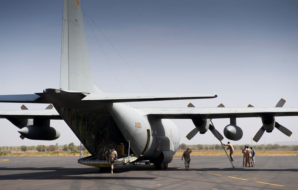 El avión de transporte C-130 Hércules del Ejército del Aire, transportando material francés a Mali.