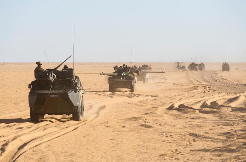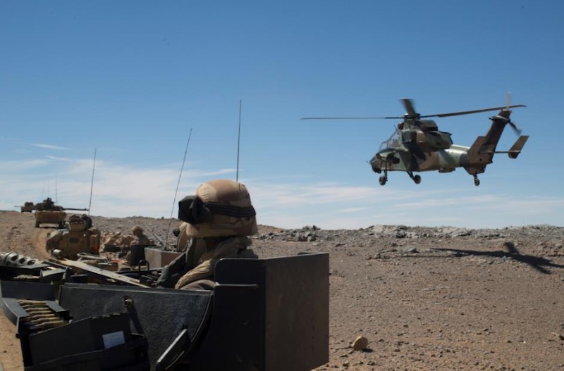 Blindados franceses, acompañados por helicópteros de combate Tigre, en las cercanías de Tessalit.