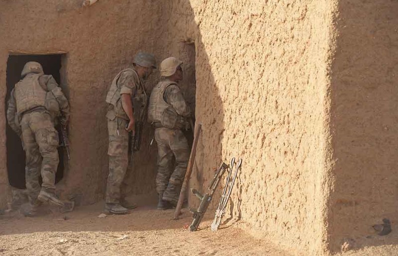 Soldados franceses inspeccionan una vivienda en un poblado en el norte del país.