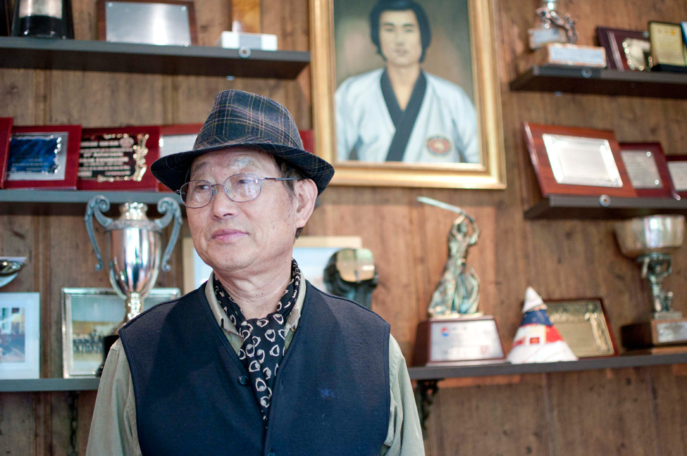 A sus 73 años, Kim Jae Won continúa dando clases en el gimnasio que fundó hace 40 años, y que lleva su nombre.