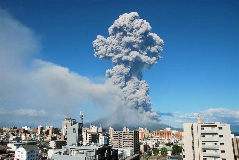 "Sakurajima" ha reanudado su actividad lanzando una gran cantidad de rocas y de lava a un kilómetro de distancia y formando una columna de cenizas volcánicas de 5.000 metros sobre la ciudad de Kagoshima.