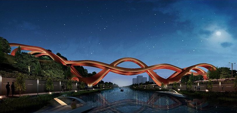 La ciudad china de Changsá podrán disfrutar de una inmensa variedad de paseos y vistas distintas con solo cruzar una y otra vez el puente que los arquitectos holandeses Next han proyectado para ellos. El diseño fusiona en su inspiración los conceptos de la cinta de Möbius.