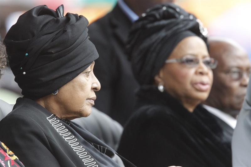 Winnie Mandela, la segunda mujer del expresidente sudafricano, y su viuda, Graça Machel, se fundieron en un afectuoso abrazo y se besaron ante los miles de sudafricanos que abarrotan el estadio FNB de Soweto (Johannesburgo).