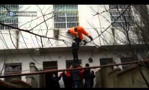 La mujer, una china de mediana edad, decidió suicidarse arrojándose al vacío, desde la ventana de su casa, tras mantener una fuerte discusión con su marido. Sin embargo, un bombero estaba preparado en la fachada del edificio y la rescató 'in extremis'.