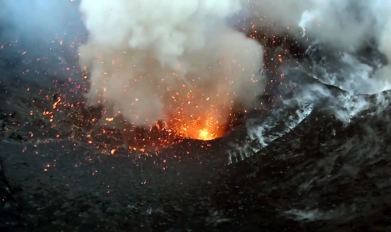 La grabación se ha realizado utilizando un cuadrícoptero drone Dji Phantom equipado con una cámara GoPro de alta definición para sobrevolar el crater del volcán Yasur en la isla de Tanna, en las Vanatú.
