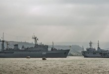 Navíos rusos bloquean el paso al buque ucraniano "Slavutich" (i) en Sebastopol | EFE