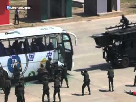 En el vídeo se puede apreciar la llegada de las fuerzas policiales, en grandes vehículos armados, abordaron el autobús, después de romper las ventanas, guiando a los rehenes fuera a través de los cristales rotos.