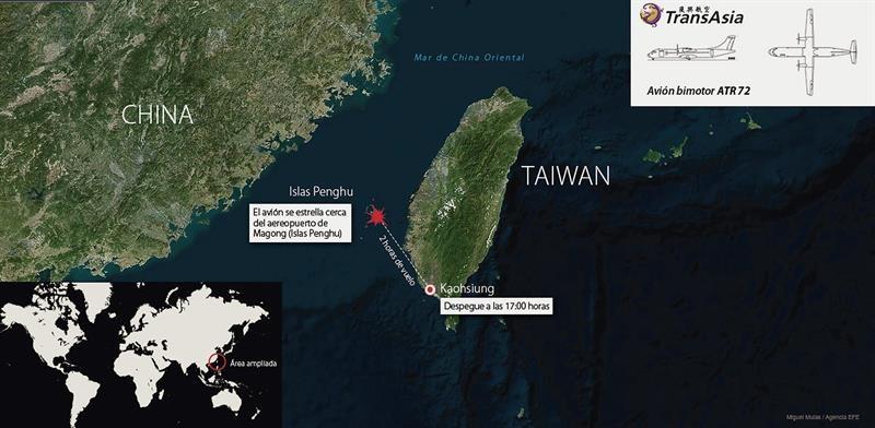 En el aparato, un bimotor ATR 72 de la compañía taiwanesa TransAsia Airways, viajaban 54 pasajeros -entre ellos, cuatro niños- y 4 miembros de la tripulación.