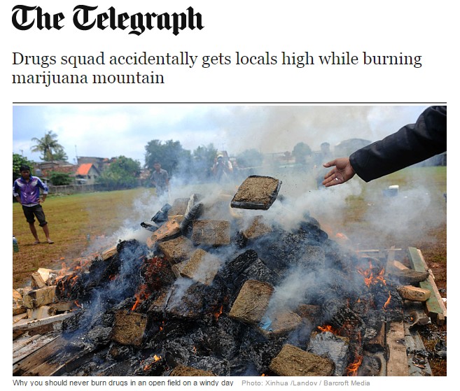 Varios policías indonesios decidieron quemar un alijo de media tonelada de marihuana además de algunas pastillas de éxtasis y metanfetamina en cristal que habían capturado en varios registros en los aeropuertos. Los agentes hicieron la fogata a campo abierto, en un enclave cercano a la comisaría y en un día con fuertes ráfagas de viento. Esto último es lo que ha provocado que el humo desprendido por la fogata terminara llegando hasta los vecinos de la zona.