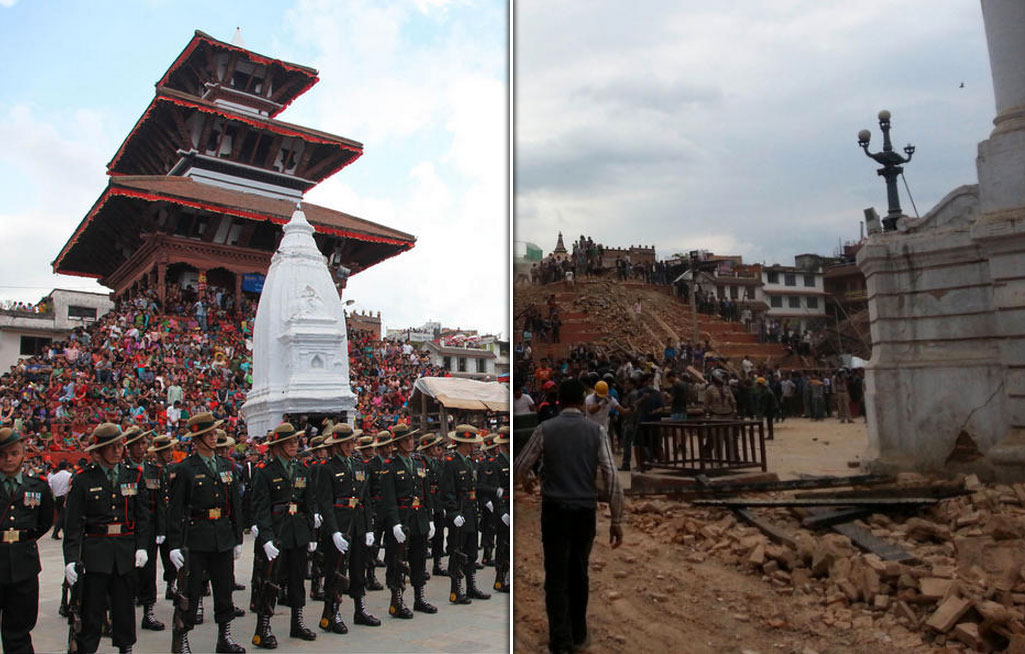 Las consecuencias destructivas del terremoto de 7.8 grado que ha sacudido este sábado la capital, Katmandú, y otras zonas de Nepal son muy notables en sus lugares más emblemáticos y turísticos.