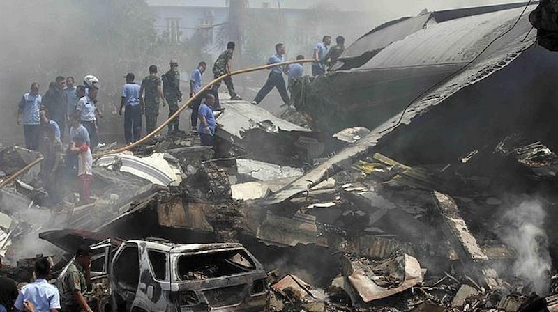 El Hércules C-130 partió de la base aérea Angkatan Udara Suwondo, en Medan, capital de la provincia de Sumatra del Norte, y cuando aún ascendía y sobrevolaba una zona residencial giró y se precipitó sobre una vivienda y el Hotel Berastapi, causando incendios en los edificios y vehículos de la zona.