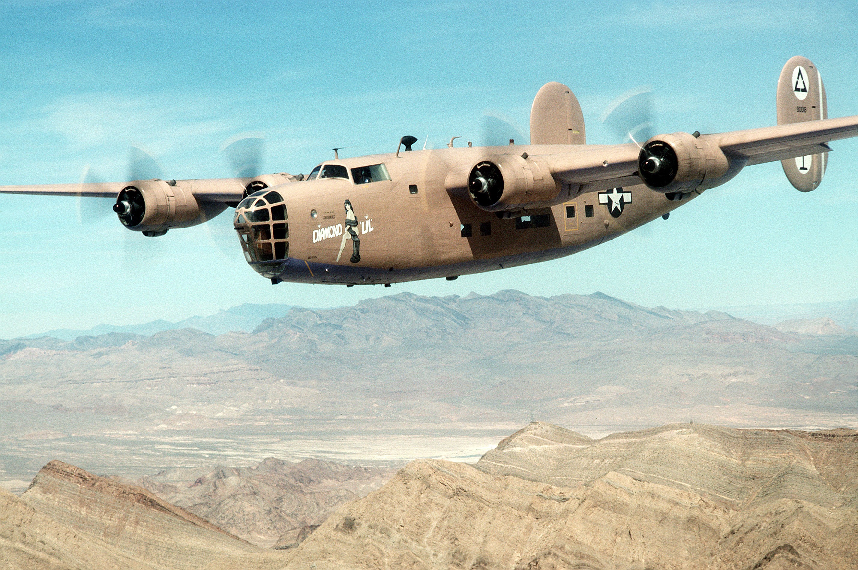 Fue el primer bombardero estratégico de los Estados Unidos, del que se construyeron 18,482 unidades y que realizaron más de seiscientas mil salidas durante los años de la Segunda Guerra Mundial. Fue diseñado por Consolidated Aircraft de San Diego como el avión de tamaño comercial estadounidense más fabricado de la historia. El B-24 fue un diseño con una velocidad punta más elevada, un mayor alcance, y capacidad para una carga de bombas más pesada por lo que fue muy usado en las acciones aliadas sobre Alemania y Japón. Su tripulación podía llegar hasta 10 personas. Su peso al vacío era de 16.590 kilogramos y máximo al despegue de 29.500 kilogramos. Estaba equipado con 4 motores Pratt & Whitney de 1.200 caballos de potencia. Su velocidad máxima era de 470 kilómetros y un alcance de 3.600 kilómetros. Equipado con 10 ametralladoras .50 y hasta 3.600 kilogramos de bombas para menos de 400 millas de alcance y 1.200 kilogramos para misiones de más de mil millas. En los primeros años de la guerra en Europa, fue el arma de destrucción más eficaz