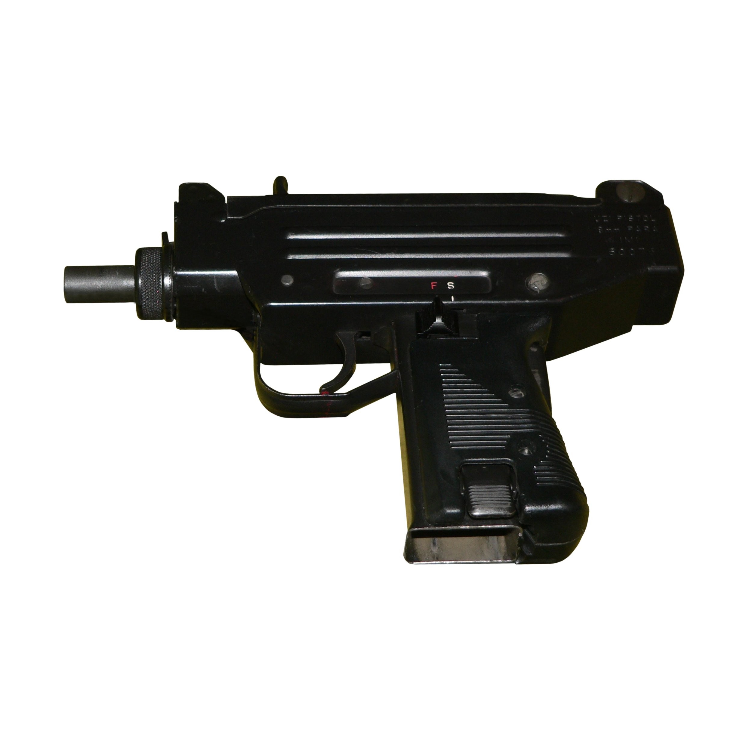 Se trata sin duda del producto más conocido y de mayor éxito de la industria militar de Israel. La primera unidad de este subfusil se fabricó en 1954 poco después de la independencia del estado de Israel. Más de 90 países tienen en su inventario estas armas. Su peso es de unos tres kilos con un alcance de 200 metros; su cargador almacena 50 balas a una velocidad de 400 metros por segundo