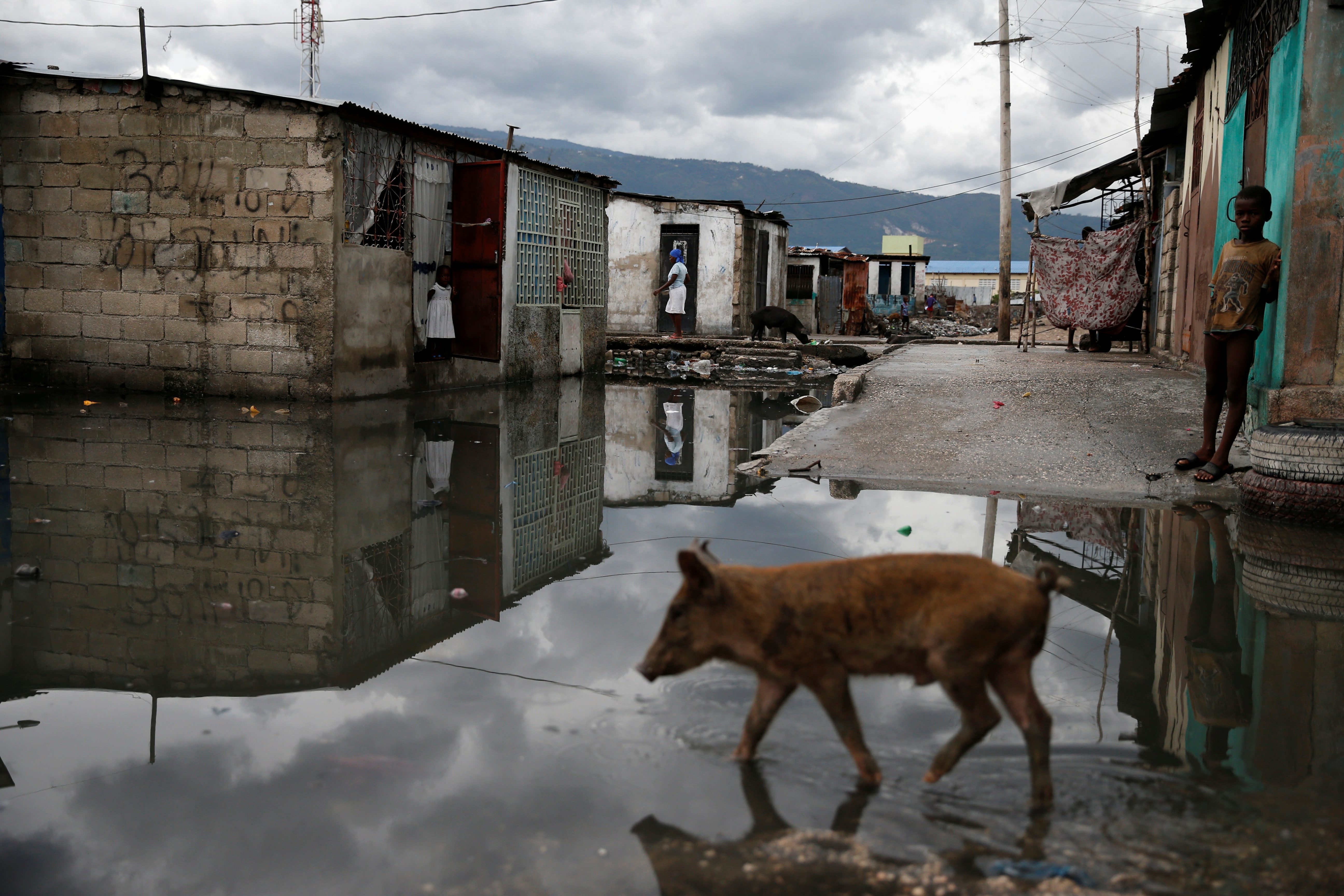 Varias personas caminan por una de las calles de la ciudad de Jeremie, en Haití, después del paso del huracán Matthew.