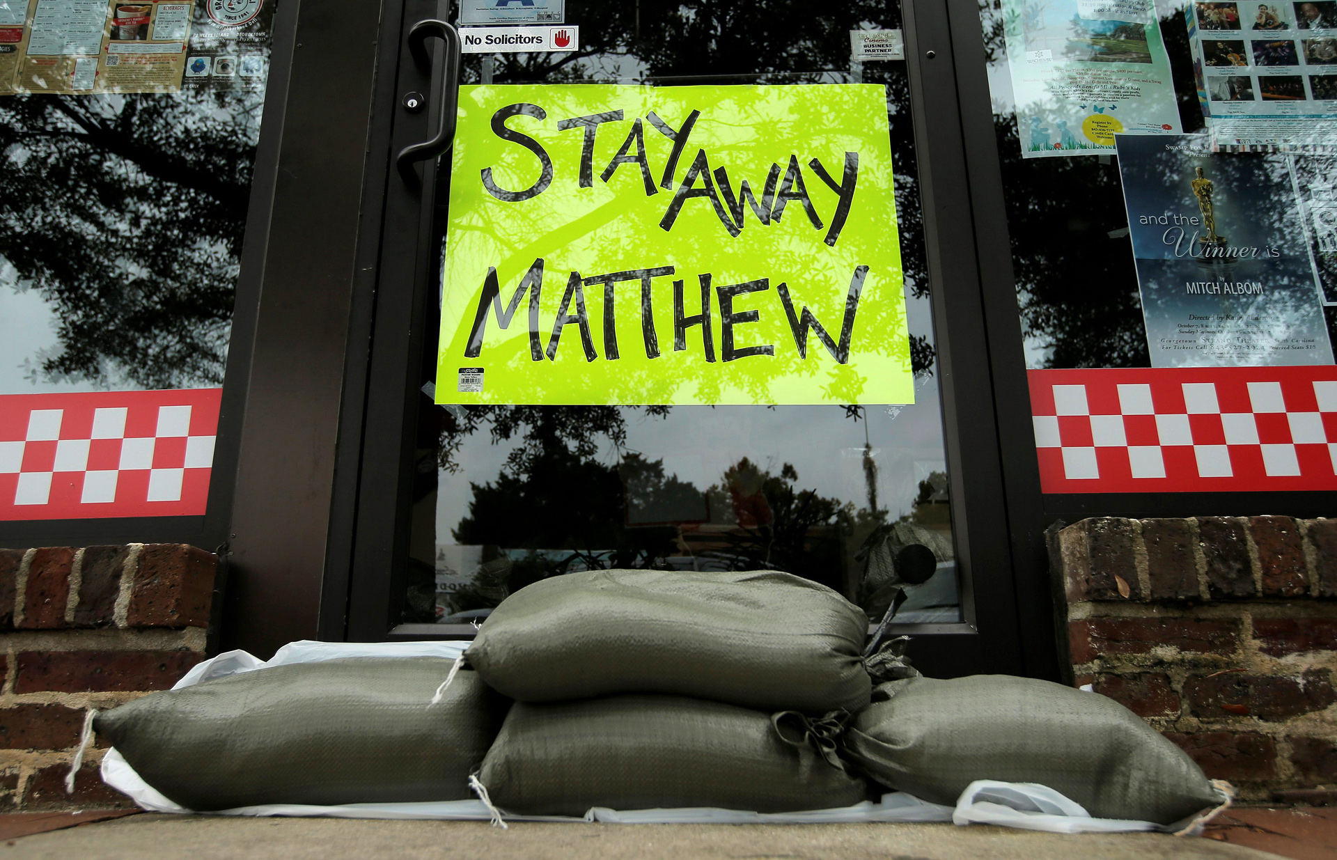 Varios sacos de arena colocados para proteger un negocio en Georgetown, en Carolina del Sur.
