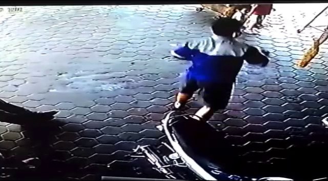 Fue un accidente ocurrido en Indonesia. Un coche descontrolado se estrelló contra la tienda de bicicletas. Dos niños pequeños estaban jugando en el garaje, pero uno de los hombres que trabajaban en el lugar, algunas informaciones apuntan a que era el padre, logró salvarlos de milagro.